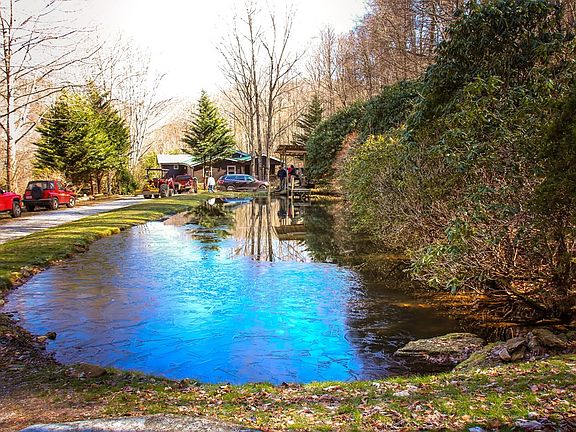 Mountain home with views and water! This is the jackpot! Tucked in the mountains with privacy and borders USFS! Located 20 mins from Bryson City. This is a great home that would make a great place to retreat to get away from the busy life, live full time, and live off the land by catching fish from your stocked pond and planting a garden or it would be a great vacation rental. This 3 bedroom/3 bath home is open with lots of space. Large open kitchen and dining. Wormy chestnut cabinets with granite. Less than a year old kitchen appliances. Hardwood floors throughout. Split floorplan. 2 bedrooms and a bonus room that would be a great office or sleeping area that has a door to the back porch. Huge living room with cathedral ceiling and cherry wood walls. Appalachian wood stove. Oversized master suite. Outside you have a large flat yard and a small fisherman's cottage (place to clean fish and keep fishing stuff) by the pond. Alarka Creek is rushing by at the entrance of the property. Carport for extra storage. Skywave internet.