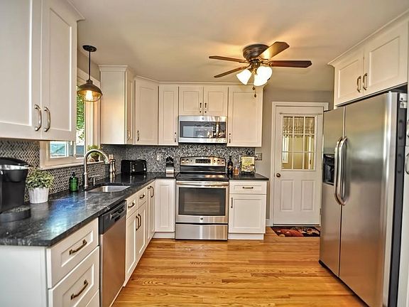***Back on the market due to buyers financing!! Convenient North location.!! Well maintained 3BR Ranch with great yard!! Young kitchen featuring white cabinets, quartz counters, SS appliances, and hardwood floors. Bright & sunny breakfast area. Enclosed porch/mud room. Spacious fireplaced living room with hardwood floors and picture window. Replacement windows and updated heating system. Master bedroom with recently updated 1/2 bath. Nicely finished lower level featuring exercise room and family/play room. Laundry area with sink. Level lot with oversized storage shed. Short drive to center, commuter rail, library and town playground. Desired Fisher elementary school district. Note: easy to show***