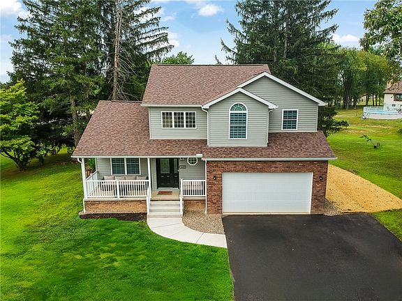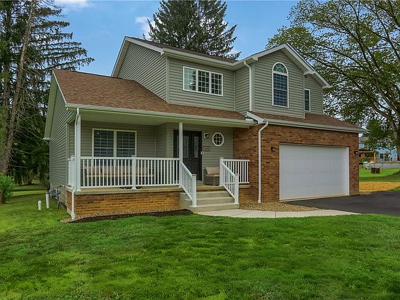 Step inside this inviting home and be greeted by a soaring great room with cathedral ceiling, a sleek ceiling fan, wide windows, and modern flooring in a neutral tone. The open dining area flows seamlessly to the deck and backyard, perfect for entertaining or quiet evenings. The kitchen shines with granite counters, tile backsplash, stainless appliances, and abundant prep space. A tucked-away powder room and laundry off the garage add everyday convenience. Upstairs, the primary suite offers soft neutral tones, plush carpet, walk-in closet, and a spa-like bath with double vanity, tile shower, and floor. A second bedroom features a charming Palladian window, while the hall bath delights with whimsical tile and tub/shower combo. A third bedroom with modern lighting completes the level, with a landing overlooking the great room. The unfinished basement boasts high ceilings and endless potential. Outside, enjoy the cozy front porch or backyard deck leading to the expansive flat top yard.