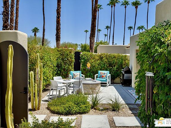 Unparalleled outdoor space adds square footage to this beautiful home. Welcome to Greenhouse West, a lush gated community within minutes of downtown Palm Springs. A Country Club vibe with two sparkling pools, spa, gazebo, tennis/pickleball court and surrounded by beautiful manicured landscapes and spectacular mountain views. Enter your expanded and walled courtyard and entertain friends or enjoy relaxing in your private spa and chilling by the cozy fire-pit all while gazing at incredible sunset views of San Jacinto Peak. Professionally landscaped, automatic drip system and warm up lighting make this the perfect outdoor room. If that's not enough, every interior room has been beautifully remodeled and all systems updated. Gallery stainless appliances; wine frig; quartz waterfall peninsula; Porcellanato Italian tile; Ove, Koehler and Moen bathroom fixtures; Hinkley lighting; Carrier HVAC. Available furnished or unfurnished. PLEASE NOTE seller has their replacement home under escrow which is why they have done a major reduction in price. THIS IS A DEAL FOR A SAVVY BUYER!