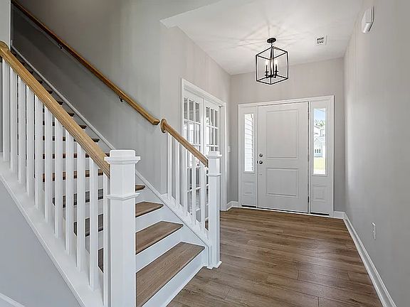 New build (2024). Get ready to say WOW! Beautiful single family home located in Cornwallis Landing. Great location, close to shopping (Walmart, Aldi, Food Lion, Lowe's and more). Only 7min to 70/42/540 highways. White Oak Crossing Center is 10min. Very safe and quiet neighborhood. This three-bedroom, two-and-one-half bathroom has a primary bedroom on the first floor!! Upon entrance, you will find a home office with French doors. Make your way through the arched openings and you will find a truly spectacular kitchen with TONS of counter space, including a tremendous island!! The kitchen opens to the great room which features a cozy fireplace and comes included with beams on the ceiling! The eat-in area is a great spot for gathering and is just off the kitchen making dinner parties a breeze! You will also find a 10x16 covered porch just off of the family room, making this a perfect spot to sip on your morning coffee! Tucked away in its own little oasis, you will find the primary bedroom. The primary has a tray ceiling and a fantastic bathroom with dual vanities, a water closet, a linen closet, and a HUGE oversized walk-in tiled shower. Let's not forget the spacious walk-in closet! On the second floor, there are two additional bedrooms with walk-in closets, a loft, and a floored storage area. You don't want to miss calling this beauty home! **Pics do not show the refrigerator and washer/dryer, however they are included. Rent: $2395 Lease length: 1yr or more **Due at signing One time, non-refundable Pet fee of $500/pet Security deposit: 1 month's rent First month's rent Renter's insurance is required (with min. $300K liability). Tenant is responsible for all utilities (electric, water/sewage, gas, garbage) and maintenance of indoors/outdoors. No smoking on premises