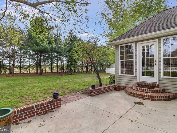 Pristine Contemporary on a premium tree lined lot backing to farmland in The Orchards. 4 bedrooms, 2 baths, Master on Main, and nearly 3000 square feet of living space including the finished basement. Grand foyer with genuine hardwood floors that extend into nearby formal living room which could also be used as a formal dining room. 25 x 15 Great Room includes vaulted ceiling, gas fireplace, stately columns, dramatic transom opening to kitchen, and custom Amish-built cabinet. Eat-in kitchen shines with newer stainless appliances, oversized sink, large pantry, brass pot rack, natural stone accents. Enjoy the beautiful back yard view from the adjoining Sun Room which flows out to the patio. Spacious Master Suite with dual closets, dual sinks, and garden tub. Bedrooms 2 and 3 are tucked neatly beyond the French doors off the foyer along with the second bathroom. Private 4th bedroom upstairs with separate HVAC and walk-in attic access. Basement includes 2 finished rooms which could be used for a home office, rec room, home gym, or hobby space. Large utility room is perfect for storage with space for a workshop. Owners attention to detail extends outside with an Amish-built shed, maintenance free fencing, custom brick steps, matching shutters on all sides, and extended driveway for additional parking. 2-car side entry garage includes work bench. Owners insulated interior walls during the building process. High rise toilets were added in both bathrooms for comfort. All custom blinds and window treatments included for the new owners to enjoy! Pride of ownership is evident around every corner in this turn key home in the award winning Caesar Rodney School District. 5 minutes to DAFB with quick access to Routes 1 and 13.