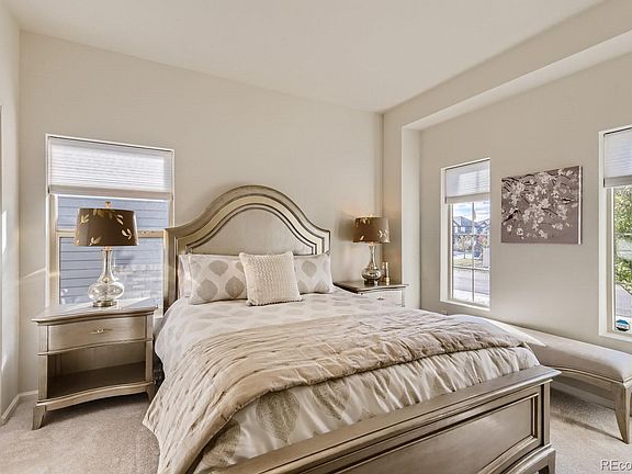 You will absolutely fall in love with this this stunning 5 bedroom, 4 bath home in Erie Highlands. The Palmer model boasts of a main floor Primary Suite with a large retreat, bathroom and walk in closet. Bedrooms are very spacious with lots of closet space. The gourmet kitchen allows ample space for entertaining around the large kitchen island. This floorplan is very comfortable for everyday living and lots of room for entertaining. The basement is partially finished with a large storage area in the unfinished portion. The walkout basement offers a very bright, large inviting family room complete with a bedroom and full bathroom. You'll enjoy the gorgeous quiet backyard while soaking in the included hot tub. This property backs to a greenbelt with trails that never end. Mornings will delight your senses with the beauty of our Colorado sunrises. Walking distance to Erie Highlands Elementary school.