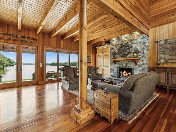 Outdoorsman’s Dream! Ralph Lauren inspired Tennessee riverfront home! This listing is for the home, boat barn, and dock on 1.5 acres. Buyer responsible for cost of updated survey and legal description to parcel 1.5 acres from the whole tract. More acreage available to purchase. Cypress floors and soaring beams set against a sweeping iron staircase bring Montana vibes to this picturesque river estate. Property includes a 3 bay dock plus a 3 bay 30x50 shop. Western views of the river make for a spectacular sunset! This property offers privacy perched above the Tennessee River, while being a short 5 minute drive from friends in Peters Landing. 18 minutes from Clifton Marina by car. Spend a day on the water island hopping between candy visits to the Mermaid Marina, Riverstone Marina, or Clifton Marina. The beauty of the Tennessee River is that it can be enjoyed year round! Put the boat away in the fall and fill your nights with fire pits and s'mores during football season. Ring in the New Year with a water view! During low-tide you have your own beach in front of your house along Short Creek!. DO NOT VISIT THE HOME WITHOUT AN APPOINTMENT AND AN AGENT.