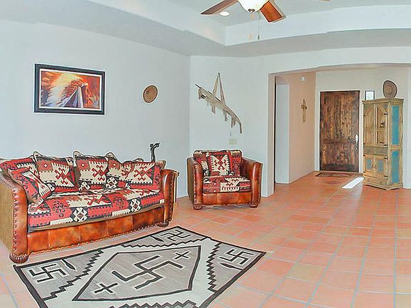 Absolutely gorgeous Santa Fe home with saltillo tile throughout-the floorplan flows exceptionally well in this 3 bedroom 2 bath with 3 car garage situated on a .65 acre lot on a quiet cul-de-sac just minutes from the heart of Prescott-knotty alder cabinetry, granite counter tops, kitchen island, coffered ceiling in den/office, spacious covered patio with access from master, family and living room-lots of wildlife on this lot w/seasonal stream, beautifully landscaped- you will love it-NO HOA, RV parking allowed. Buyers must view interior prior to submitting offer. Be sure to put this home on your MUST SEE list.