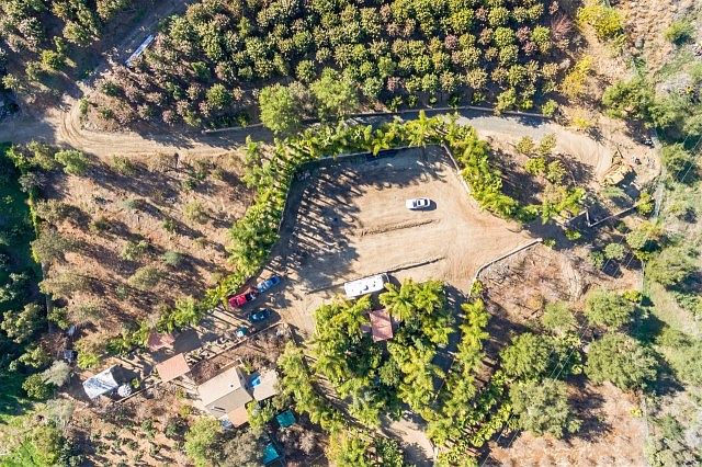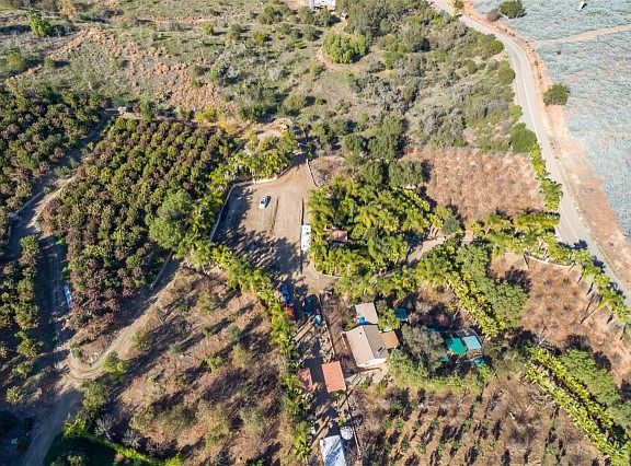 The value is in the LAND! This 16 acre parcel is not just dirt! Substantial investment has been made in retaining walls around property. The site has been graded and compacted and a "U" shaped driveway has been built to the potential home site. The electric front gate is the perfect entrance to your private estate. 46 pillars of light along with a stamped concrete patio with a water feature and a palm lined sitting area awaits you. This is a profit-producing grove with Avocado, Guava, Pomegranate, Cherimoya, Apple, Apricot, Almond and several other mixed fruit trees. A 2 bedroom fully permitted 480 square foot guest house, 2 Kawasaki mules, 1 Quad, Equipment to maintain the grove, Sheds, Storage tanks, Walk-in Cooler, multiple refrigerators, 2 Wells, Seasonal creek, Permitted house plans, Work shed, Fertilizer ejection valves, and an in-ground brick oven and much more convey with the property. An amenity list is available upon request.