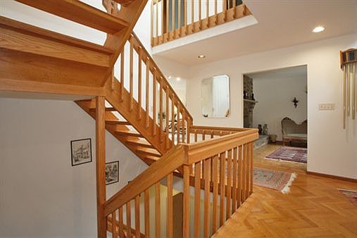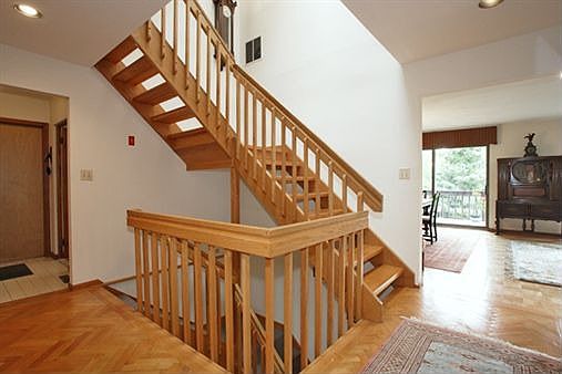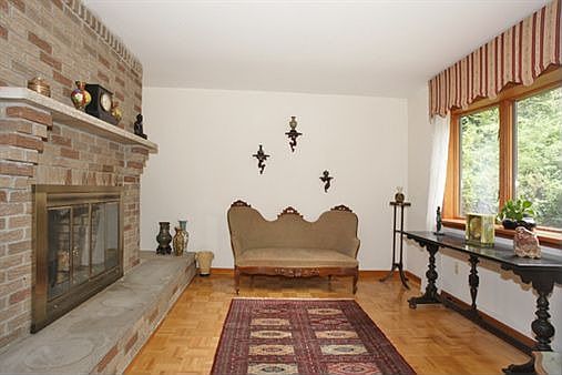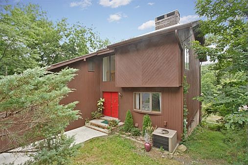 This one-of-a-kind custom contemporary is situated on over 5 acres of private grounds, abutting parkland, providing total privacy. Glass sliding doors and windows on all three levels of the house provide magnificent views of the changing seasons. The marvelous wrap around deck is the ideal spot for summer entertaining and enjoyment of your own pond and the nature that surrounds you. The open, foyer features an open oak staircase and hardwood floors adding warmth to the entry. A two-sided brick fireplace is the focal point of both the formal living room and the family room. Allmilmo cabinets line the eat-in kitchen, which also boasts granite countertops, a center island, new GE Profile appliances, and a pantry. The spacious Master suite includes a private balcony and Master bath with a Jacuzzi tub and stall shower. Two additional nice-sized bedrooms, a large hallway bath and plenty of storage complete the second level. The walk-out lower level is home to a guest suite that includes a large family room with brick fireplace, a summer kitchen, bedroom with built-in shelving, full bath, laundry room and a solarium that opens onto a covered patio. In addition to the attached two-car garage, the home also includes a separate, large workshop and an as-is Pole Barn which has some completely enclosed area for storage and an open covered area for large recreational vehicle and large equipment. This unique home is an easy commute to major highways and shopping and includes a home warranty.
