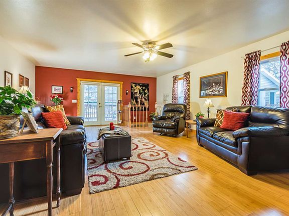 Spacious & charming 4 bedroom 2 bathroom home that backs up to a city park. Many recent updates include an addition, electrical, plumbing, insulation, siding, windows, trim & solid six panel doors all in 2003 & new flooring in 2013 & 2016! Beautiful bamboo floors throughout much of the main level with French doors leading from living room out to 10x12 deck. Enjoy the home theater system with 7.1 Bose surround sound speakers, 100 inch screen & projector. Full basement has 12x29 shop & walks out to backyard. Includes 2 storage sheds & home warranty. Great home close to parks and pool!