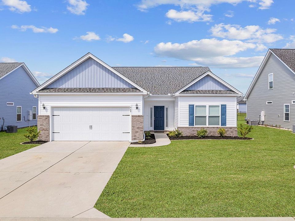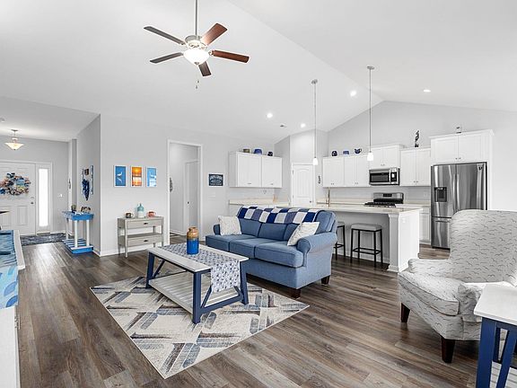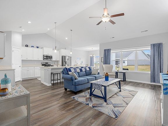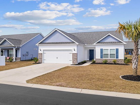 Discover coastal living at its finest in this beautiful, barely-lived-in 2021-built home in the Ocean Palms Community in Surfside Beach! Enjoy serene pond views from your covered rear porch or take a short golf cart ride to the beach. This meticulously designed home features 3 bedrooms, 2.5 bathrooms, and a 2-car garage. The custom floor plan offers two primary suites – one boasting a tray ceiling, oversized walk-in shower, and an oversized walk-in closet, while the other offers a tub/shower combination and a spacious walk-in closet. Tucked away for privacy, the third bedroom and half-bath are nestled in their own private hallway. In the main living areas, you’ll find upgraded waterproof LVP flooring beautifully showcased under the vaulted ceilings. The kitchen features stainless appliances, quartz counters, staggered-height white Shaker-style cabinetry, a corner pantry, and abundant natural light. Experience coastal living at its best with natural gas amenities, an irrigation system, endless included features, and proximity to shopping, dining, and the Atlantic Ocean. Schedule your showing today!