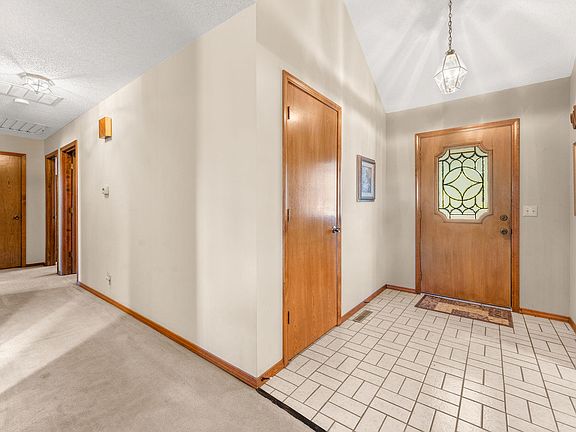 This walkout basement home sits on 3 acres with picturesque views. The main floor boasts a large living space with wood beams, wood burning fireplace and high ceilings. The large eat in kitchen gives you tons of cabinet space and there is also a formal dining room for entertaining and holiday hosting. The master suite features dual sink vanities and a walk in shower. There are 2 additional bedrooms and a full bath on the main floor. Make your way to the basement and you'll find another large living space with fireplace and a wet bar. There are 2 large additional bedrooms, a full bath, and ample storage space. This home has had lots of recent updates including new roof, new exterior paint and guttering in 2024, new windows, driveway and sidewalk. This home is ready for you, it's new owners, today! Schedule your private showing now.