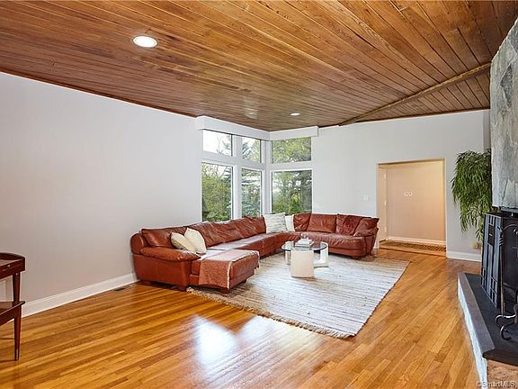 Must see mid century chic Victor Civkin original Frank Lloyd Wright inspired home situated on a lush green half acre of professionally landscaped property just minutes to everything. Front stone steps bring you into the gracious foyer which opens to a sun filled windowed living room with vaulted ceilings and original stone fireplace that soars to the ceiling. Hardwood floors throughout the living spaces offers a warmth and comfort of home. Open dining room with sliding doors to the patio to make entertaining a natural flow inside and out. Enjoy the newly renovated kitchen with quartz counters, white cabinetry and new stainless appliances, drenched in sun from the skylight above. At end of day repose to one of the two spacious hall bedrooms with custom closets sharing a hall bath with double sink. The private and expanded master suite is newly updated with an ensuite spa like bath boasting a jacuzzi tub, oversized shower and double sink. The Suite is complete with a Walk-in closet, large windows and attached office with french doors. The generous finished basement is where the party spills or family escapes for a movie night. Wraparound stone patio overlooks beautifully manicured backyard with space for play, dining al fresco and quiet relaxation. The circular driveway connects to Oak Bluff cul-de-sac for teaching how to ride a bike and invites the outdoor play we remember from times gone by. Live here and love life.