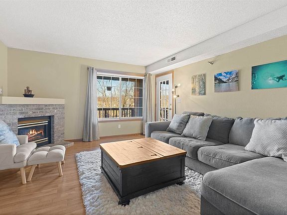 Popular 2nd floor Mallard Point Condo nestled close to Willow Creek Park. This inviting condo features an open floor plan when you walk in through the front door ideally set up for entering guests. Cozy great room with a corner fireplace, mounted TV and sound bar that will be staying, and access to the covered deck. Nice kitchen with granite countertops, tile backsplash, SS appliances including a newer microwave. There are two generous sized bedrooms including the primary bedroom that has a private access to the covered deck, two closets, and an updated private bathroom with modern finishes. Added decorative floating shelves. Enjoy sitting on the covered deck with a nice pond view. New furnace fall 2022. There is 1 parking stall in the secured parking garage under the building with access to an elevator. Located right on the bus line! All of the furniture is negotiable. Current dues are $200 per month, but will be going up in January to $250 per month. There are no rentals allowed. No dogs are allowed. One cat or other household pet with board approval may be allowed. Washer/dryer staying. Storage closet on the covered deck.