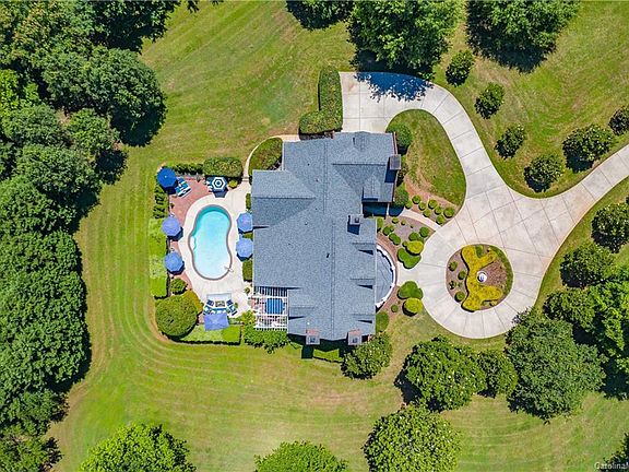 Southern Charmer with over 3 ACRES and in ground pool! This home is oozing with charm from the minute you enter the property. Beautiful circular drive leads to fountain and covered front porch. Lovely two story foyer opens to gorgeous dining room with fireplace. Across the foyer you will find a private sitting room with fireplace perfect for an office. Bright and light two story Great Room with fireplace and open to two story kitchen. Kitchen features gas cooktop, stainless steel appliances, two sinks and large pantry. Master on main with adjoining sunroom. Gorgeous moldings and plantation shutters throughout home. Upstairs includes 3 nice size secondary rooms and HUGE bonus room with wood floors, wet bar and additional convenience staircase for easy access from kitchen. Private backyard with in ground pool, deck, pergola and grill with dedicated gas line. Fridge, Washer & Dryer convey. HVAC, Roof and Gutters replaced in 2016! Hot Water heater replaced 2019! Marvin Schools!