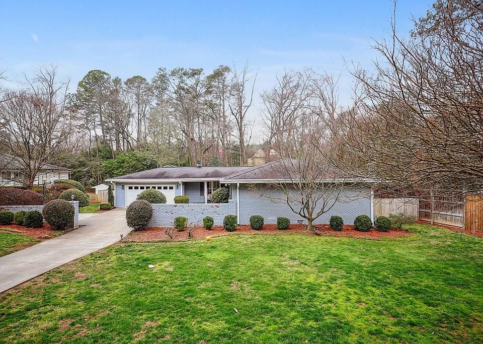 Come see this hidden gem inside the perimeter. A beautiful all brick four bedroom/three bath home on a quiet cul-de-sac. This home was updated throughout with a gorgeous kitchen that boasts an oversized island, wonderful storage, designer lighting, Wolf range and a large walk-in pantry. An open concept floor plan has fireside dining and a vaulted great room with expansive windows. The private master suite was added on to the home with his/hers closets, large bathroom and a bedroom that opens up to the private back deck and backyard. There are three more bedrooms on the other side of the home, one en suite bathroom as well as a large double vanity bathroom. The fenced backyard has a second garage with a finished large space above that is perfect for a teen space or office. Close to schools, parks, shopping and dining. In town living with a residential feel.