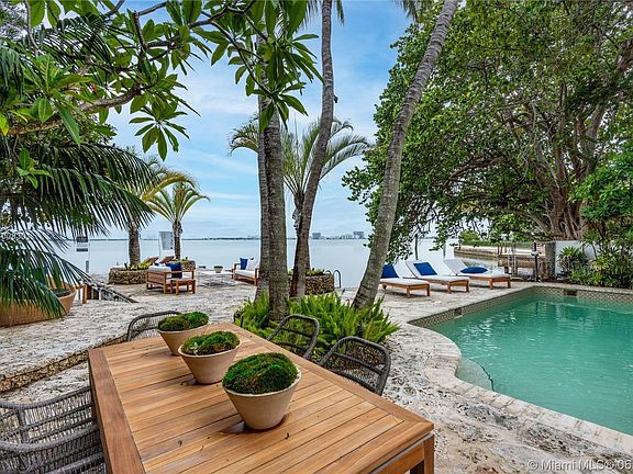 The Jewel of North Bay Road! A Pied-a-Terre on the most expensive bayfront enclave in Miami Beach, North Bay Road, offering 60 feet of prime waterfrontage with exploding sunsets over the wide-open bay and Miami skyline! This charming 3bed 3.5bath Mediterranean villa is sited on a 5,400 Sf lot amidst 20M to 50M mansions. Lushly landscaped with swaying palms, a keystone courtyard leads you inside where immediate views of the water will capture your attention. The living room is embraced by soaring cypress wood-beamed ceiling, original arched wood doors, keystone fireplace, saturnia floors. Modernized kitchen offering water views and direct access to the backyard. The outside is equipped with a pool, Keystone patio area, huge 40x20 feet protruding dock, barbecue. Also for sale at $7.9M.