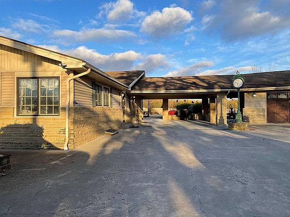 THIS PLACE IS AWESOME Check out this luxurious beautiful home with 15 acres and just outside of town. This features a 3 bed, 4 bath home has had the updates, beautiful oak woodwork, crown molding, cabinets, marble counter tops, walk in showers, that are all top of the line. Custom shelving in closets, carpet and wood floors. Nice sized living room, with wood stove insert, oversized family room, with fireplace, office, and an entertainment room just off the kitchen. This home sports brick and custom metal roof. Breeze- way provides for parking and attaches to the 3 car garage/shop. The back of the home features a nice rock patio with outdoor fire /cooker for entertaining. An awesome view of the private but open area to the rear of the home for watching wildlife. A 30' X 24' storage shed/shop outback and additional storage building garage also out back. In the front of the home a large spacious yard with a pond, and gazebo for relaxing in. Call us today to schedule your showing!.