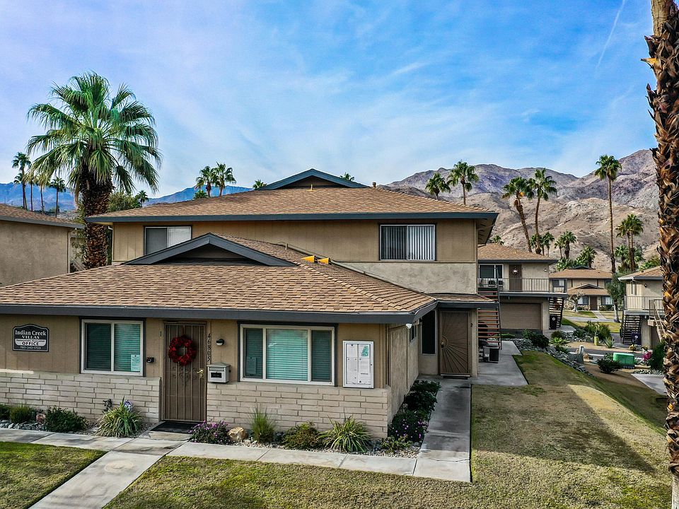 Welcome to Indian Creek Villas located in South Palm Desert! This well-maintained community has two pools and spas and is walking distance to the cross hiking trail. With an open living space, dining and the kitchen areas downstairs, this condo has a great feel. Both bedrooms and a full bath are upstairs, providing separation from the lively areas in the home. Both bedrooms have mountain views, and the primary bedroom has a walk-in closet! In addition, there is a shared single car garage with extra storage space as well. There is additional parking behind the garage and guest parking within the community. Each of the four-unit buildings have their own laundry area this one shares a building with the office, so it becomes three owners versus four to use the coin laundry machines. The homeowner's association covers the maintenance of the pool/spas, landscaping, water, trash, exterior paint, roof, and some insurance making this community well desired. It is also close to El Paseo providing lots of shopping and dining options. This community and location make this a great place to call home!
