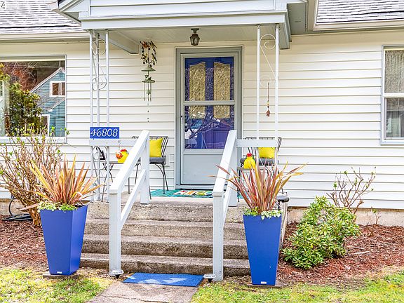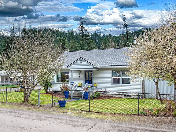 This very well-maintained home in coveted Hemlock neighborhood in Westfir OR, is a MUST SEE! This Custom, 2-bedroom, 1-bath home offers hiking, biking, kayaking, birding and many outdoor activities out your front door a Scenic Byway, North Fork Middle Fork of Willamette River and Cascades! This updated 1951 light-filled, corner-lot home features contemporary finishes, a new roof, newly painted exterior, seamless gutters (Fall 2023) and under-home insulation. Unique architectural features/custom touches include: refinished original Douglas Fir floors, solid-core interior Birch doors, custom cabinetry and bamboo trim throughout, ceiling fans and dimmable lighting. Spacious living room features under-stair storage and lots of natural light. Modern kitchen boasts oversized custom cabinetry with raised ecoresin-panel doors, adjustable shelving and drawers, a full suite of stainless steel Kitchenaid appliances including a double-oven range, and industrial furniture for added storage. Primary and 2nd bedroom features custom-designed closets with overhead lighting and built-in storage. Bathroom highlights a custom tile shower/oversized soaking tub combo, radiant-heated floor, heated exhaust fan, and LED-lighted hotel mirror! Large upstairs offers open-floor plan complete with extensive insulation in ceiling, walls and floor and a ductless system! Great for a studio, office/teleworking and a recharge space. Custom-built Tuffsheds include 200 s.f studio/workshop with rough-sawn paneling, professionally installed insulation, overhead LED lighting, ceiling fan and ductless system; 140 s.f. outbuilding features overhead LED lighting and custom shelving for your necessities and indulgences. Back yard offers a peaceful place to relax and unwind with its custom corrugated metal fence, covered patio, barn-style lighting/motion-sensor security lighting and low-maintenance hardscaping. A bonus graveled side yard offers a place for gardening, outdoor projects and storage.