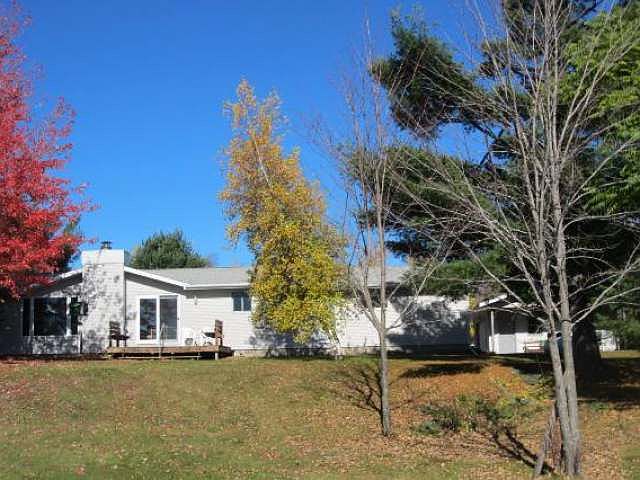 Dynamite panoramic view of the Turtle Flambeau Flowage! This property features 139' of level frontage with a western facing lake view that sprawls widely to the State owned shoreline across the lake. Very well maintained 2 bedroom home neatly wrapped in vinyl siding. Open concept kitchen, dining, living area complete with recessed wood ceiling, fireplace and waterfront windows. There is a great entry way with spacious closets, main floor washer and dryer and full basement. There's plenty of toy storage room with the attached garage, plus a 22'x22' detached garage with additional overhang on the lakeside. Large auto generator included. Schedule a private viewing today!