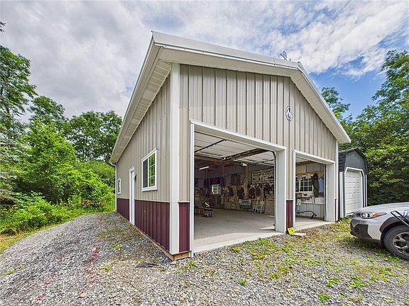 Experience comfort, style, and privacy in this fully remodeled 3-bedroom, 3-bath ranch nestled on 2.3 scenic acres.With a bedroom on each end there is a private area for an in-law suite or office. Thoughtfully updated from top to bottom, the home features spacious bedrooms, a full basement, and modern upgrades throughout including new flooring, siding, windows, and central air.The stunning kitchen boasts granite countertops, custom cabinetry, a double-door refrigerator, double oven, built-in microwave, dishwasher, and wine cooler, perfect for everyday living and entertaining.Set back from the road, the home enjoys a peaceful setting with a paved driveway, treed yard, and a small stream winding through the lightly wooded area, offering a true sense of rural tranquility. A large shed and spacious 4 plus car garage provide ample storage and workspace. Two 2car garage doors and high ceilings offer many opportunities for home business.Lovingly maintained by one family, this property blends rural charm with modern comfort and only 20 minutes to both Cortland and Ithaca.