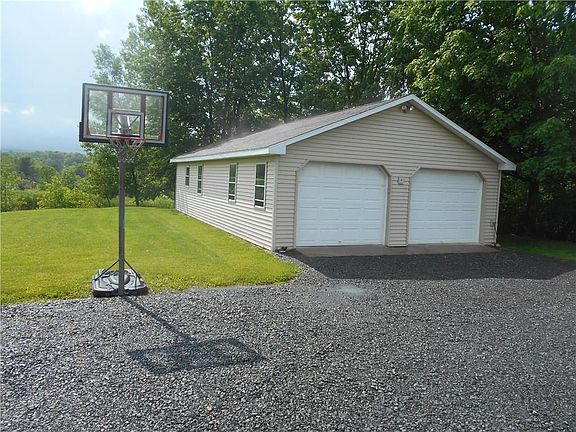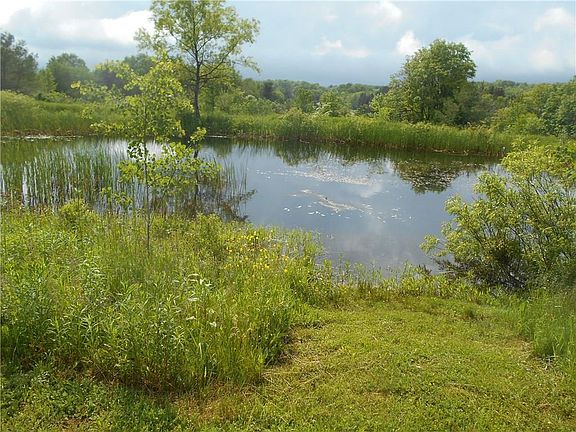 Newer home on 5 acres with pond. Special features include a 2 car detached garage with large work area close to the pond. Home features a wrap-around covered porch, central air, radiant floor heat, open floor plan, hardwood floors with cherry in one of the bedrooms, full bath on first and second floor, large utility room for laundry and additional storage and wonderful views of the hills beyond. Property is a corner lot with 217 feet on Prosser and 880 on Italy Hill. Home was completed in 2006 so it's in move-in condition. Close to Keuka Lake State Park and Italy Hill State Forest with nearly 1900 acres.