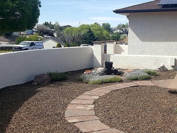 This charming home in a family-friendly neighborhood in the heart of Prescott Valley offers so many upgrades! Desirable corner lot with a beautiful covered front courtyard and water feature, and a raised rear deck are all perfect for entertaining. Very private feel, but close to shopping and medical facilities. The Great Room with an adjacent enclosed Arizona Room offers access to the rear deck that is perfect for an office, craft studio or indoor entertaining. Two electric fireplaces are included--one in the Great Room and the other in the Arizona Room. The vaulted ceiling in the Great Room and Kitchen lends a spacious feel, and a corner pantry and the many upgrades in the kitchen add storage. The Master Bedroom also offers access to the rear deck through double doors, and has an en-suite