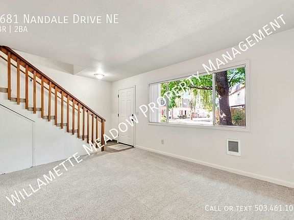 Discover this spacious and updated 2-bedroom, 1.5-bathroom apartment at 4681 Nandale Drive NE, offering 975 square feet of bright comfortable living space. Recently upgraded with newer paint, carpet, and stunning granite countertops, this unit provides a fresh and inviting atmosphere. The apartment features a fully equipped kitchen, including a newer refrigerator and range, and ample storage. Conveniently located near I-5 and Highway 99W, you'll enjoy easy access to nearby shopping and dining, including Roth's and McDonald's. Water, sewer, and garbage are included in the $1,295 monthly rent, and the apartment is managed by Willamette Meadow Property Management, ensuring hassle-free living with online rent payments and maintenance requests. Unfortunately, no pets are allowed. This is a perfect opportunity to call a comfortable, updated apartment in a prime Salem location your new home! CLICK LINK TO SCHEDULE SELF SHOWING Water/Sewer/Garbage Included in rent. You can also explore walkthrough videos of this property and others on our website. Willamette Meadow Property Management offers convenient online services, including easy application submissions, quick rent payments via E-Check or credit card, and hassle-free online maintenance requests. We prioritize our tenants' well-being by promptly addressing work orders and being attentive to any issues that arise in your rental. We believe in maintaining a harmonious balance between owner and tenant, and we're committed to creating that balance for you. Disclosure: All initial rental agreements are for 11 months, and all agreements require renters insurance unless exempt by law. Additionally, all Willamette Meadows Property Management Inc. residents are enrolled in the Resident Benefits Package (RBP), which includes HVAC air filter delivery (for applicable properties), a utility concierge service to simplify your utility connections during move-in, our best-in-class resident rewards program, and much more! Additional details are available upon application. 1.5 Bathroom 2 Bedrooms Cadet Close To I 5 Garbage Heaters New Granite Countertops Newer Carpet Newer Paint Newer Refrigerator Range Range Walk In Closet Water/Sewer