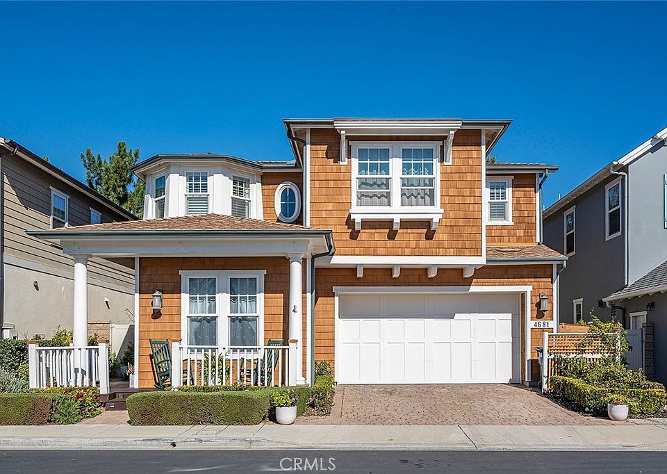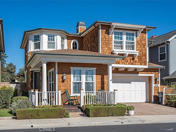 Experience coastal luxury living in this exclusive Brightwater gem! A rare find, this classic Cape Cod is one of only a handful of 4 bedroom homes built in The Trails neighborhood. Featuring 4 Bedrooms, Office, Bonus room & 2.5 baths, this approx. 2,020 sqft home, offers the perfect blend of sophistication & beachside charm. Step inside to discover gleaming hard wood floors. High ceilings & large windows create a bright & airy atmosphere throughout. The chef's kitchen features Viking appliances, floor to ceiling cabinets, an abundance of granite counter space for meal prep & a large island with barstool seating. The open layout flows seamlessly to the family room & backyard BBQ area. An inviting family room is the center of this home with a cozy fireplace & built-in entertainment center. A powder bath & large bonus room (shown as music room) complete the first level. Upstairs, the primary suite is a true sanctuary with tray ceiling, wood floors and green tree-top views. Enjoy 2 closets, both a sliding wardrobe closet & a large walk-in closet, providing ample space for all of your attire. The ensuite bath boasts quartz countertops, large soaking tub & separate shower with quartz seat. Imagine waking up in your beach-close haven, where the sunny skies and the salty breezes invite you to embrace the coastal lifestyle. Wood floors lead you down the hall to 3 additional spacious bedrooms, a full bathroom with shower & quartz countertops, a laundry room, linen cabinet & an open loft area with built-in shelves for the perfect office. Nestled on a peaceful cul-de-sac with no houses behind you, this home offers tranquility & privacy. The meticulously designed layout provides both functionality and aesthetic appeal, making it an ideal space for family gatherings & entertaining guests. The lush green back yard showcases a large open patio with string lights, a built-in BBQ, and an adorable custom built play house. This "she-shed" is fully finished with real working lights, windows & custom paint. A 2-car garage with overhead storage and a cozy front porch complete this home. The Brightwater community features pools, jacuzzi, club house, gym, nature walking trails, tot lot play area & grassy parks. This prime location is less than a mile to the Huntington State Beach, close to Pacific City, Huntington Harbour, south OC, LA, great restaurants and local shopping. Don't miss the opportunity to call 4681 Winthrop Drive home! Call for your private showing today.