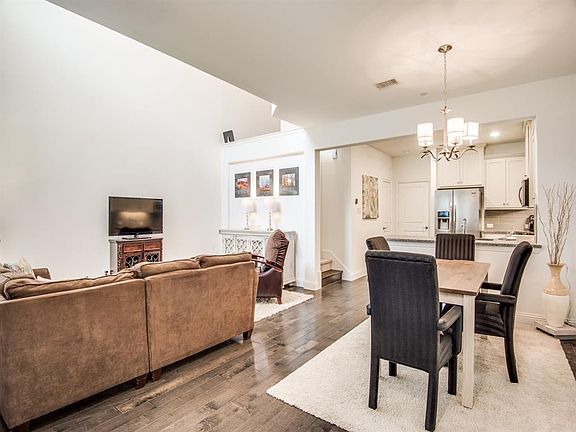 Don't miss this lightly lived in & immaculately maintained town home in beautiful Mustang Park! Enjoy the convenience of a lock & leave lifestyle where the HOA maintains the lawn & wonderful amenities including community clubhouse, pool & private lake. This two story Carson floor plan built by CB Jeni is upgraded with hardwood floors throughout the downstairs, open floor plan with soaring ceiling in the living area, spacious kitchen featuring crisp white cabinetry with brushed nickel hardware, leathered granite counter tops, stainless steel appliances including gas cook top & separate oven plus an over sized walk in pantry under the stairs. Large main bedroom & bath includes a HUGE walk in closet for storage.