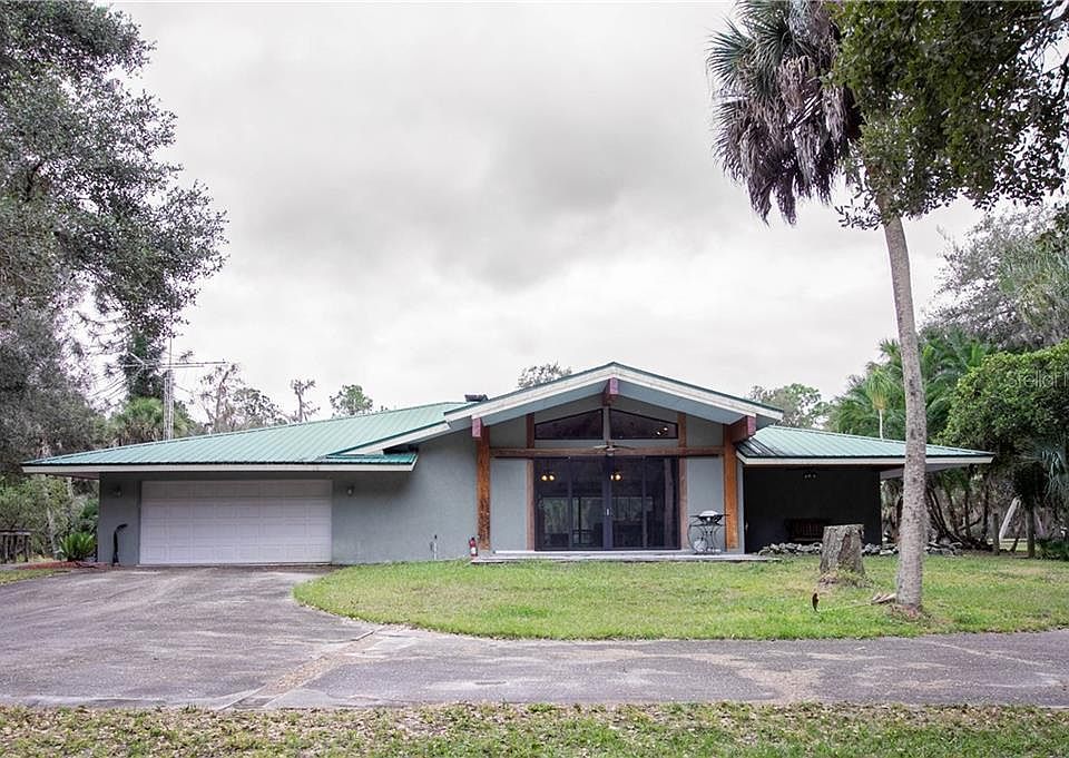 Great home on a large double lot in a desirable gated aviation community. Over 11 acres of privacy that is cross fenced. Home was renovated in 2008 to include new plumbing, new metal roof, state of the art kitchen and a small addition. Vaulted great room overlooking a pond. Spacious open kitchen with commercial gas stove, built in refrigerator, built in microwave, and prep station with additional sink. Great split plan design with attached two car garage. Large 67X8 screened in porch overlooks the pond with a waterfall. Two additional 36X36 and 60X85 buildings/hangers plus a greenhouse, cook shed, and shooting range. Spectacular privacy. Deer and turkeys roam the yard through the adjacent Myakka State Park. Great neighborhood with wonderful neighbors who get together regularly for social events. Community has a clubhouse/recreation area that includes a small boat ramp on the Myakka River. Fly into your own runway and taxi your plane to your house. Far enough from town to feel the country, but close enough to run in for groceries. Runway is 2550' paved and lighted. Bring your airplane, horses, and all your other toys.
