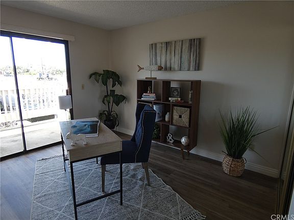 Walk to the beach! Twenty minute walk to the Pacific Ocean! Rarely on the market in the exclusive private gated community of Pointe Surfside. This is a single level condominium with only one common wall on the top (third) level with convenient elevator access. One mile from the Pacific ocean and Bolsa Chica Beach. The large patio, living room and den have sunset views and wonderful ocean breezes flow through the unit almost every day. New flooring, new paint, updated master bath, new appliances have made this into a turnkey, move-in ready home! The skylights add to the natural light of the many windows and sliding glass doors. This unit is one of those that also comes with a private garage and it is located right at the entry sidewalk by the unit as well. There is a cozy fireplace for those cool evenings and soaring cathedral ceilings give such a feeling of spaciousness. Having no one living above you and being only attached at one wall makes for a very quiet and peaceful place apart from the hustle and bustle of Orange County life. This complex is very convenient to shopping and the beach. The second bedroom has been opened up to create an open den/office but the owner is willing to consider adding the wall back if a new owner requests it. Very simple to do as the closet is already there and just a simple wall is all that is needed.
