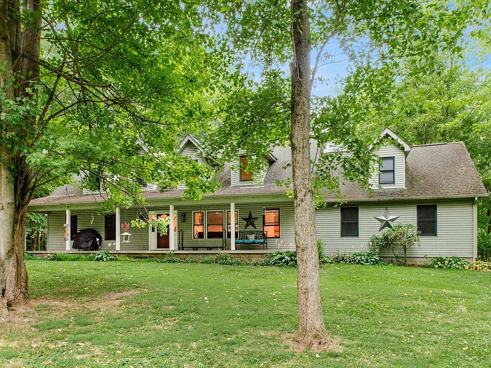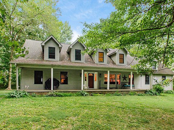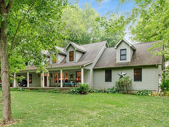 Welcome to this beautiful 3 bedroom 2.5 bath home nestled in gorgeous 3.5 acre wooded lot. Large covered front porch. Fantastic open floor plan with two story ceilings in great room and open to kitchen with island and loads of cabinets. Kitchen is open to family room with fireplace. Kitchen has door leading to huge deck with pool and hot tub great for big family gatherings. Enjoy the privacy in your backyard. First floor owners suite with large walk in closet and bath that also leads to deck.Two large bedrooms upstairs and loft. One of a kind home nestled in trees waiting for you to call home.