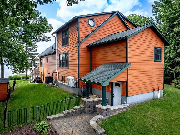 STUNNING lakefront property! Enjoy this beautiful home with Panoramic views from the inside overlooking German Lake which has nearly 800 acres of recreational fun and fishing! This amazing home has high-end upgrades throughout: main floor has a new and enlarged gourmet kitchen with custom cabinetry, granite counters, stainless steel appliances, all new lighting, new high-quality flooring, vaulted ceilings and a wall of glass to enjoy beautiful sunsets and lakeshore views; living room with a cozy gas fireplace, dining room, four season porch (sunroom) and full bath. Main floor master suite plus secondary bedroom and full bath. Upper level has 2 large bedrooms with jack-and-jill bath and loft are. Walkout lower level is amazing -- family room has gas fireplace and large custom bar with both both copper and granite counters, 2 beverage refrigerators, ice maker and dishwasher. New furnace and central A/C, plus 2 new mini split systems and a new whole house carbon filter water system. Walkout level also has fitness room, flex room, den and full bath. This all walks out to the beach and patio. Oversized 3-car garage with an unfinished loft area above located across the road on the second lot.