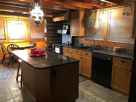 This log cabin is on a wooded mountain top with 8.9 acres, fenced pasture, 2 barns/stables, tractor shed/barn, garden shed/storage building, covered dog kennel. This unique log cabin was originally built in 1930 and was rescued, moved and rebuilt in 2005. The home features heart pine flooring and ceramic tile flooring, tong & groove pine and log interior walls with cathedral ceilings, double pane windows and an energy efficient Nest thermostat. The den features stone fireplace with gas logs, cathedral ceilings with exposed beams. The kitchen features an antique reproduction stove with copper hood, modern stove, dishwasher, refrigerator and granite countertops and custom built cabinets. The master bedroom features cathedral ceiling, built in display shelving, closet has Cedar wall. Master bath has claw foot tub, antique built in vanity. Laundry room and a rear enclosed sun room which is peaceful and a pretty view of woods and pasture. The second floor features a loft bedroom with built in desk and shelving, bath has claw foot tub, built in antique vanity with granite and built in storage cabinets. Large closet has cedar flooring. There are antique light fixtures throughout the home, glass door knobs, 3 built in stained glass windows. This home is nestled in the trees with stone steps and stone walkways.