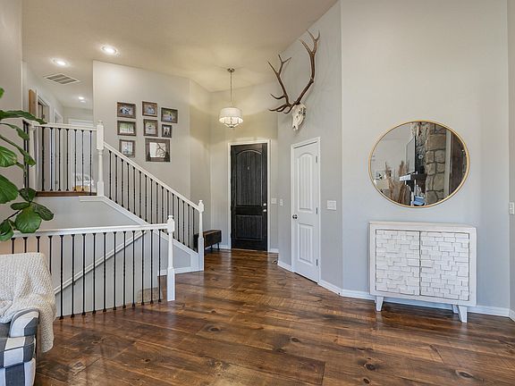 This stunning all stone and brick home offers ample curb appeal and is nestled on a cul-de-sac in the desirable Lakes of Wild Horse subdivision. Built in 2015 by Shawn Turner, the home is like new except it offers amenities often not available in new homes such as window treatments, mature trees, and an outdoor oasis out back. You'll immediately notice the unique finishes like custom, solid wood flooring and trim on the main level, spindle staircase, light teal glass backsplash, and many more features--the owners opted to hire their own interior designer to work with the builder to create personalized but cohesive spaces. The main living room has soaring ceilings with tubular skylights and a double-sided stone fireplace with solid wood mantle. On the other side of the stone fireplace, the kitchen features a large granite island with eat-up breakfast bar, ample knotty alder cabinetry, stainless appliances (new refrigerator that stays with home, and brand new dishwasher), and a separate dining area with bay window. The master bath offers double-sinks in a granite and knotty alder vanity, separate water closet, two walk-in closets, a tiled shower, and a soaking tub with tile accents. Downstairs you will find a second living area perfect for entertaining, watching movies, gaming, working out and more! Other interior bonuses include: the other two full baths and one half bathroom also feature granite, the doors throughout are solid wood, and washer and dryer stay with the home! Outside, prepare to be amazed by the custom entertaining features and landscaping--the owners meticulously installed an upright stone fireplace and stone patio, and put cobblestone rock in the flowerbeds in 2022. The backyard also features an oversized deck, a treehouse with slide, blackberry bushes along one fence line, three apple trees, one peach tree, and a sprinkler system. Hot tub negotiable. The neighborhood offers a pool, tennis courts, and children's play area, and trash service!