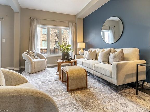 Welcome to 4683 Kurtz Road in Burlington’s sought-after Alton Village. This semi-detached home features 3 bedrooms and 3 bathrooms, offering 1,446 square feet of well-designed living space. Hardwood flooring extends throughout both levels, accentuated by a hardwood staircase with wrought-iron spindles. An inviting entryway with double doors leads you to the sunken foyer, which opens to a bright and spacious main floor that includes a large living/dining area and an eat-in kitchen equipped with tall cabinets, stainless steel appliances, a tiled backsplash, and a breakfast bar. Upstairs, you'll discover three generous bedrooms, including a primary suite with a walk-in closet and a 4-piece ensuite. The backyard, with artificial turf and stone features, creates a low-maintenance outdoor retreat. Additional highlights include a finished laundry room, an Ecobee smart thermostat, an Easy-Flo central vacuum, and parking for two vehicles. The home is conveniently located near top-rated schools, parks, shopping, and major highways.