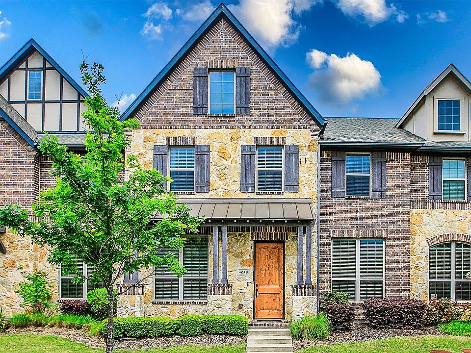 Exquisite townhome with 2 car garage, in one of DFW's hottest areas! 10ft ceilings, open-concept floor plan, large kitchen overlooking living and dining areas. 1st floor Owner suite with oversized walk-in closet and dual bathroom vanities. Gorgeous designer finishes, ceiling fans, hardwood floors downstairs and newly installed plush carpet & padding upstairs. Additional recreation room upstairs with tray ceiling. Walk-in closets in all bedrooms and bonus attic storage. Premier location with lots of shopping and restaurants nearby. Easy access to Dallas North Tollway & 121. Schedule your showing today!