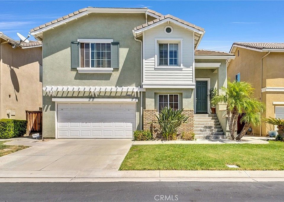 Charming Riverside Gem in the scenic Riverwalk Community! Welcome to 4683 Trailmore Ct, a stunning residence nestled in the desirable Riverwalk Tiburon gated community, built by Griffin Industries in 2001. This exquisite home offers 2,124 sq. ft. of thoughtfully designed living space, featuring 4 bedrooms and 3 bathrooms. Upon entering, you'll find a welcoming landing with a short flight of stairs leading you to the main living areas. The open and airy great room, enhanced by a cozy gas fireplace, wood floors, and surround sound speakers seamlessly connects to the dining area and kitchen. The well-appointed kitchen boasts oak cabinets, an island with seating and extra prep space, and a walk-in pantry for ample storage. The main level also hosts the primary bedroom, a serene ensuite retreat with a generous walk-in closet, luxurious soaking tub, a standing shower, and a spacious vanity area. An additional bedroom on this level is perfect for guests or a home office. Descend a short flight of stairs to discover two more bedrooms, a convenient laundry room, family room, and direct access to the oversized 2-car garage, complete with extra overhead lighting, WiFi LED garage door opener with camera, custom cedar-lined closets, built-in laundry bins, and additional cabinets for efficient storage. Step outside to your private backyard oasis—a low-maintenance retreat designed for both relaxation and entertaining. Equipped with pre-wiring for outdoor speakers, a built-in barbecue area with a grill, sink, ceiling fan, bar seating, a stackstone firepit, and a beautifully designed jacuzzi. Additional features include a fire sprinkler system, central AC/heat, an energy-efficient water heater, upgraded light fixtures, Smart thermostat, wood shutters, and custom closets. The Riverwalk neighborhood is required to be maintained above normal city standards; and features include beautiful artwork on traffic boxes, public and private parks, a lake, and streams, along with a horse trail, fitness apparatuses, lakeside gazebo, and nearby shops, grocery stores, and restaurants. Featured inside the Riverwalk Tiburon gated community, you'll enjoy several resident-only amenities including a basketball court, pool, and a new tot lot. Conveniently located minutes from the 91 freeway and offering quick access to the 15, this home is perfectly situated for both comfort and convenience. Don’t miss the opportunity to make this Riverside treasure your own.