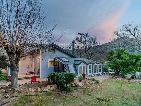 Beautiful and private one of a kind Anza retreat property. This charming country home AND remodeled guest home sits on 18.31 acres of land with beautiful mature landscaping and seasonal blue line creek adjacent to Beauty Mountain Wilderness. The main home is approximately 1550 square feet with 2 bedrooms and 1 bathroom. The home has a Vermont Castings wood burning stove, good size kitchen which is open to living room and picture windows to enjoy your view. The bathroom has a huge, jetted soaker tub that was originally from the Las Vegas Hilton Elvis Prestley Suite. Off the living room is a deck overlooking your acreage. The guest home is a studio floorplan fully remodeled estimated at 360 SF with a 5ft fenced yard around it with two gates. The interior has all new plumbing, insulation, wood burning stove, new cabinetry and flooring with butcher block countertops and farm sink. The bathroom has soaker tub and there is a tankless water heater. Outside you will love the multiple garden areas, mature pine and other shade trees, manicured manzanita and redshank and a few fruit trees, container/workshop. There is a "Buddy" trailer by guest home and full RV hookup area away from both homes with 40' X 16' reinforced concrete pad. This property has a private water well and an additional view pad where one could potentially build another building. There is also a great deal of undeveloped usable land for you to further develop or leave wild. Get ready to hike the hills and the creek bed. This is an absolute must see property for anyone looking for a retreat type property or just a beautiful unique place to live.