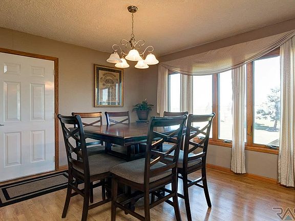 Just on the outskirts of Sioux Falls this 1/2 acre Ranch style home is beautiful. Featuring a gorgeous kitchen w/lots of cabinets, stainless steel appliances, and an island to gather around. The dining room is open to the kitchen & including wood laminate flooring and ample space for table & chairs. Living room is also open to the dining room featuring a beautiful bay window. The master bedroom includes double closet & a pass thru to a full bathroom. 2nd bedroom on the main level also features a double closet. Also, on the main level is a large 3-season room; which is surrounded in windows to view the massive yard w/privacy fence. In the lower level of the home is a huge family room w/great space for entertaining. There is a 3rd bedroom in the LL including a double closet and a roomy 3/4 bathroom. The 2 stall garage is attached, oversized & has a drain. Property also features main floor laundry, and beautiful landscaping.