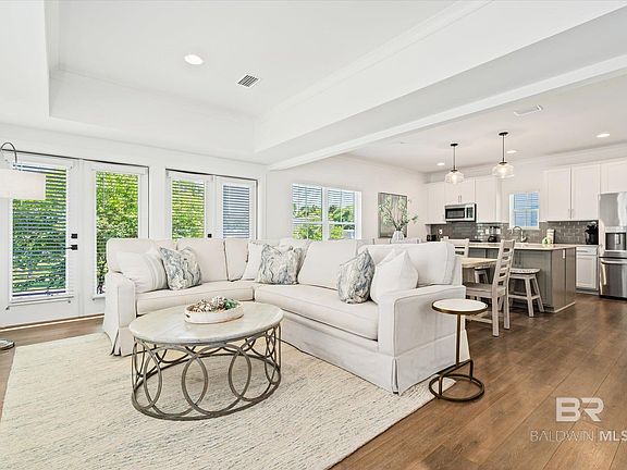 This FULLY FURNISHED, Gold Fortified (see docs) newly built, home in Orange Beach sits just off of Wolf Bay, only 10 minutes from the white sandy beaches of Orange Beach. This home was professionally decorated and is offered fully furnished. Built in 2022 by Prominence Homes, this home features 3bedrooms with 2.5 bathrooms with high-end finishes throughout, including CWS high impact windows rated up to 155 mph winds. The main living area offers hardwood floors, painted cabinets and quartz countertops. The Primary Suite offers a spacious bedroom with a large bathroom and 2 walk-in closets. Each bathroom includes painted cabinets, quartz countertops, tile, and designer finishes. Short term rentals are allowed in the Sunset Villas Community. HOA covers ALL lawn maintenance and pool maintenance $166/mo. Owner is a licensed Realtor in the state of Alabama. Buyer/buyer's agent to verify all items of importance to buyer including but not limited to: HOA, schools, taxes, sqft., etc... Buyer to verify all information during due diligence.