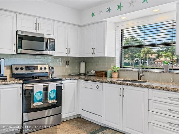 Wow, this beautiful 2/2 Villa with 1 car garage in the gated community of Bent Tree West can be your next home! Upon entering, you are greeted with newer luxury vinyl flooring and can immediately feel the meticulous care from the owner. Spacious & bright kitchen renovated with lovely white cabinets, granite countertops, & subway style backsplash. Primary bedroom features en-suite bathroom & walk-in closet. Both bathrooms fully updated & feature walk in showers. No popcorn ceiling here! Accordion Shutters & Enclosed patio to enjoy those gorgeous Florida sunsets! Active adult community with low dues that include Water, Cable, Lawn Care, Building Maintenace & Roof Repair not to mention a clubhouse with activities, billiards & a sparkling pool! Close to shopping, Restaurants, & beaches.