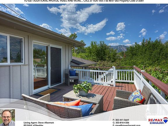 This beautifully remodeled home on a large corner lot in Hy View sits high in the neighborhood with excellent views of the Flatirons, plains & city lights from several rooms inside the house and from the approx 600 sqft deck. Open floorplan features an outstanding kitchen with granite counters, maple cabinets & SS appliances. Gas fireplaces in the living & family rooms. New roof, newly refinished hw floors, recently painted inside & out, 6 ft privacy fence. Located one block from trails, and there's easy access to mtns, Denver, DIA, the South Bldr Rec-Center, and the great restaurants and shops in the Table Mesa Center, including Southern Sun & Caffe Sole.