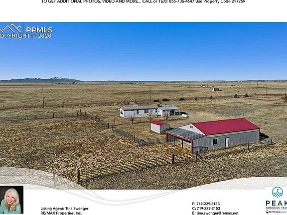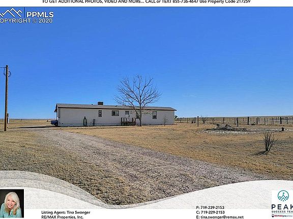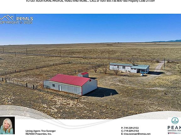 This wonderful purged manufactured home sits on 8 acres of beautiful prairie, and faces an unobstructed view of Pikes Peak and the expansive Colorado plains. The front door opens to the spacious carpeted living room. The eat-in kitchen is separated from the living room by a peninsula and hanging cabinets. Included in the kitchen is a gas range, dishwasher, refrigerator, disposal, and was finished with vinyl flooring. A separate laundry room off the kitchen includes the washer and dryer, as well as additional storage area. This room can also be used as a walk-in pantry. The spacious main bedroom is located on the north end of the home and offers a private full bathroom as well as a walk-in closet. The north side of the home presents a second cozy bedroom, which would make an ideal nursery or craft room. At the end of the hall is another generously sized bedroom with built-in seating. Between these two bedrooms is another full bathroom. A large mud room offers additional storage with built-in cabinetry, a freestanding freezer, and provides an exit to the rear of the home and wonderful concrete patio overlooking the peaceful pasture and outdoor arena. This home is the perfect escape from the hectic city. Calming prairie lands perfectly suited for horses, as it includes a 50 x 30 barn split with 35x30 barn area, 14 x 9 tack room, and 14x19 shop. Both the tack room and shop have insulation and subflooring installed. Attached to the barn is a 30 x 11 loafing shed at the end of a 60+ panel outdoor arena. Through the arena, you can access the back pasture, which is also fully fenced.