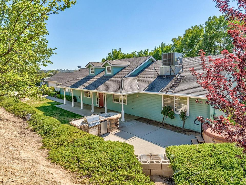 First class living in Coarsegold Country!! Very private gated and paved driveway back to this secluded home. Totally be impressed as you drive up to the one level 4 bedroom, 3 bath 2,516 sq. ft. home. Attached 3 car garage with breezeway to the apartment and home . A separate 2 car carport. Amazing front yard fenced, landscaped, spa, outdoor kitchen and fire pit. Front and back patio are covered. Inside offers open floor plan with pine cathedral ceilings and a ceramic tile fire place insert and back windows galore over looking the back covered patio, fenced pasture, tack horse building and westerly Sunsets. The kitchen has granite counter tops, open floor plan with island and corner pantry. Master suite and bathroom plus 2 guest bedrooms (one turned into office with built-in desk, cabinets and bookshelves and guest bathroom. The opposite end of the home off the living room is a 4th bedroom, 3rd bath and studio apt with outside entrance to the breezeway!! All set up for "Horses"! 3 separate fenced pastures! All set up for outside adult entertaining with even a legal sized Bocce Ball court. Hoot, holler and horse around on this incredible property!! There is more. If you want more horse property or just privacy the seller has 1 additional parcel for sale behind the home parcel. Additional parcel is 2.83 acres listed at $71,900. Seller financing is available on parcel. The main home on 2.88 acres.