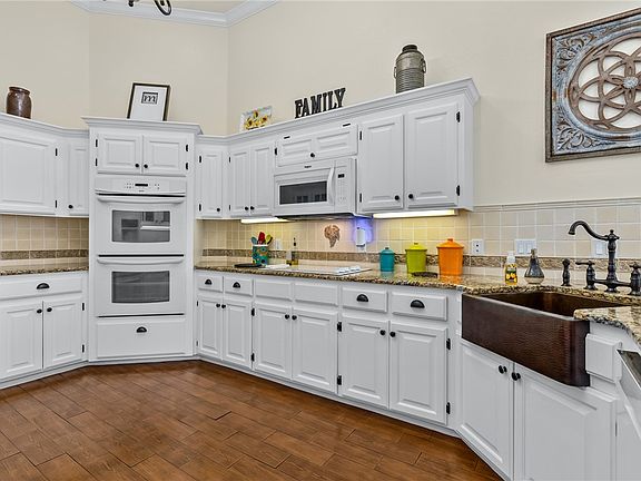 Elegant custom built home boasts 2 primary bedrooms with en suit baths and large accessory closets and a large 3rd bedroom/office with a private entry to third full bath. Enjoy the picturesque view fromm the heated and cooled sunroom through beautiful windows over looking the gorgeous private back yard. The eat-in kitchen includes granite counter tops, double oven, built-in pantry, newer appliances and copper sink. 12 ft ceilings and crown molding throughout. Large formal dining room. Family room with propane gas log fireplace (natural gas is available). The 5 acre yard is chain-link fenced with separate fenced back yard with 14x14 pergola . Electric and solar powered gates at driveway entrance. Beautifully landscaped with raised garden beds, many fruit trees, vines and berries. Also included is a three car attached garage, 30 x 36 workshop with 10 x 10 powered (4th) garage door and insulated office and a 12 x 16 storage building. Proof of financing availability or proof of funds letter required for all showings.