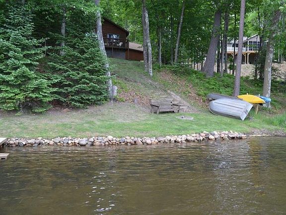 WEST HORSEHEAD LAKE WATERFRONT GETAWAY! If an awesome year around cabin with great lake frontage is what you seek, then look no more. This very well built and meticulously maintained property features 2 bedrooms, a full bath, open living room with access the elevated lakeside deck, nice kitchen/ dining area and a full basement that offers plenty of storage and expansion possibilities. There is a 26 x 28 garage that offers room for all the toys along with loft storage and as an added bonus an insulated bunk house. The 1.86 acre lot is nicely landscaped, has plenty of room for an additional outbuilding, offers an elevated plateau with wonderful lake views and then a level shore front that has 100 ft. of sandy shoreline. Additional amenities include a blacktop driveway, storage shed by the lake, great fire pit area, drilled well, conventional septic and cedar siding. You will be hard pressed to find a nicer, well maintained cabin on a great lake then this one!