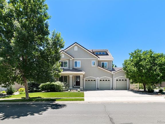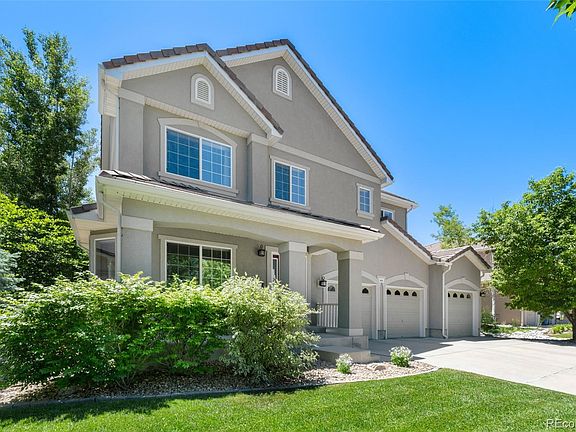 Elegant and beautiful 3-story home nestled in the heart of Broadlands with great access to Broadlands public golf course, trails, parks, neighborhood pool and elementary school. Just 1 mile to Broomfield Commons and Paul Derda Rec Center and open space with miles of trails and an 80 acre park/sports complex and dog park. A rare find with 5 bedrooms on 1 level and a bonus 3rd floor rec room. Main level features newer plank flooring and a remodeled kitchen with island seating, quartzite countertops and tile backsplash. Abundant windows for plenty of natural light throughout. Perfect floorplan for entertaining with kitchen open to family room and easy flow out to covered deck and yard for backyard BBQs. Lush and mature trees, shrubs and landscaping with sprinkler system front and back plus drip system. Extended outdoor entertaining space on flagstone patio. The 2nd floor features a primary suite with a 5-piece bath and 4 additional bedrooms. Bedrooms are all large and spacious and there is plenty of walk-in closet space. The 3rd floor rec room and full bath could also be an ensuite 6th bedroom. Unfinished basement with egress window for all of your extra storage needs or potential future finish. 3 car garage. Concrete roof with lifetime warranty, 2 furnaces and 2 a/c units, 50 gallon hot water heater. HOA includes access to neighborhood pool.