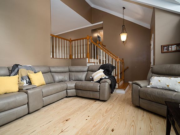 Wait til you see the UPDATES - this house is SPECIAL - it LIVES LARGE! Step into the living room w fireplace & large window w lots of natural light! Beautiful light pine floors! Kitchen is a dream w handsome serving bar, stainless appliances, corian countertops, tiled backsplash -all light & neutral - youll love it! Atrium doors from great room take you out to super large and new multi-level deck - great for entertaining & family cookouts! Main bedroom has en suite bath w walk-in closet+dressing rm! On lower level find the wonderful den/family rm/mans cave w new butcher block wet bar, office, 3rd full bath & lrg stone fireplace - could you ask for more? Atrium doors take you out to the lower deck & huge level backyard! Great family home with three living areas - plenty of room for everyone! Metal no-maintenance roof that lasts forever! Large laundry/utility room for washer/dryer (they stay)! Seller has put his talents & creativity to great use here & you will be the beneficiary!!