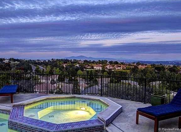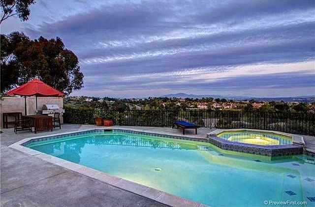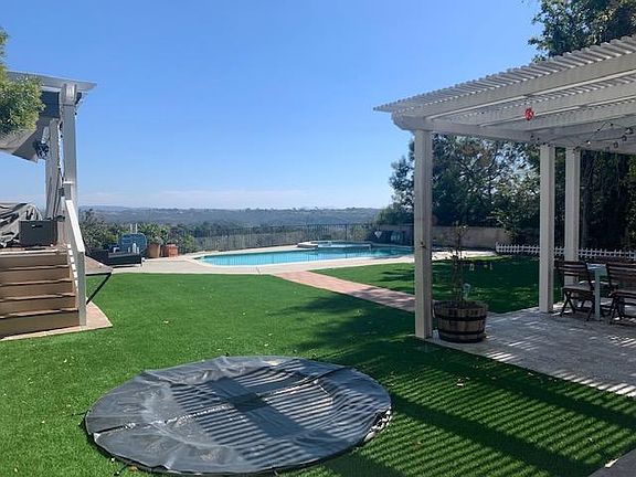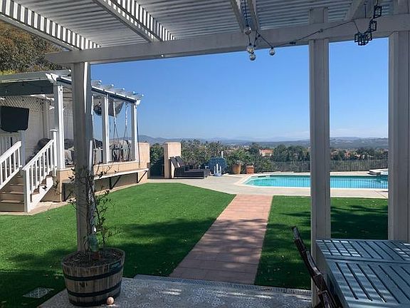 Available Early May to Mid- August. Del Mar Place plan 4 with large yard, pool/spa & panoramic views. Located in a quiet cul-de-sac. Home provides front gated courtyard, new carpet and flooring and interior paint, stainless appliances, refinished cabinetry, epoxy garage floor. The back yard is an entertainers dream, huge with organic elevated deck to take in the views with wine barrel swings, large covered patio area with hanging day bed to nap or work from home, grass play area, pool/spa and beyond spectacular views. Located in the heart of Carmel Valley for convenience (close to Sky Deck, one Paseo, Trader Joe's), 10 of 10 award winning schools, entertainment, shopping and 10 minutes from Del Mar beaches. Fully furnished, Exceptional Del Mar Place home located on an private elevated lot with expansive views. Backyard was completely remodeled with elevated deck overlooking the stunning view, in-ground trampoline, artificial turf, in ground pool and hot-tub, tether ball and so much to enjoy in this large, beautiful outdoor living space. House located in a quiet location at the end of the cul-de-sac and just 10 minutes drive to Del Mar beach, just a drive to great restaurants at One Paseo, pacific highlands ranch and del mat highlands plaza. Lots of natural light and nice breeze throughout the home (A/C as well when we get a heat wave). Home has been meticulously cared for with new flooring. Many improvements to the home including kitchen with high quality cabinets, stainless steel appliances including a double oven. All the bathrooms have been remodeled and include high end bidet toilets. The backyard is set against a backdrop of pine trees, nature, and distant mountains. You will love the private setting, full of nature, tranquility, and space to relax, have the kids play or entertain outdoors. Home has 5 bedrooms up and 1 bedroom (downstairs bedroom no closet, but perfect for guest space) & bath down and a hidden Storage or play room for a secret hideaway/play space for children. The master bedroom is expansive, with a desk to work overlooking the stunning mountain view. Best of all, it is centrally located in the heart of Carmel Valley and convenient to everything important. Schools are exceptional, Carmel Creek, Solana Pacific, Carmel Valley Middle School and Torrey Pines High School or Canyon Crest High School all rated 10 in greatschools.org rating. Home is fully furnished and month to month lease. Low maintenance cat or dogs will be considered. Great neighbors, close to Del Mar Highlands shopping center, One Paseo and SkyDeck! Wonderful all around! Rent includes monthly pool maintenance and gardener. Owners will be responsible for gas, water, utilities, internet. NO smoking at all. NO pets allowed unless agreed to in advance.